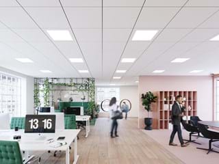 Ecophon Akusto löst als Ergänzung zur Akustikdecke nicht nur anspruchsvolle akustische Herausforderungen, sondern bietet Designer:innen zusätzlich die Möglichkeit, besondere gestalterische Akzente zu setzen. Mit Akusto ist es einfach, Räume zu schaffen, in denen Menschen sich wohlfühlen und produktiv sind.