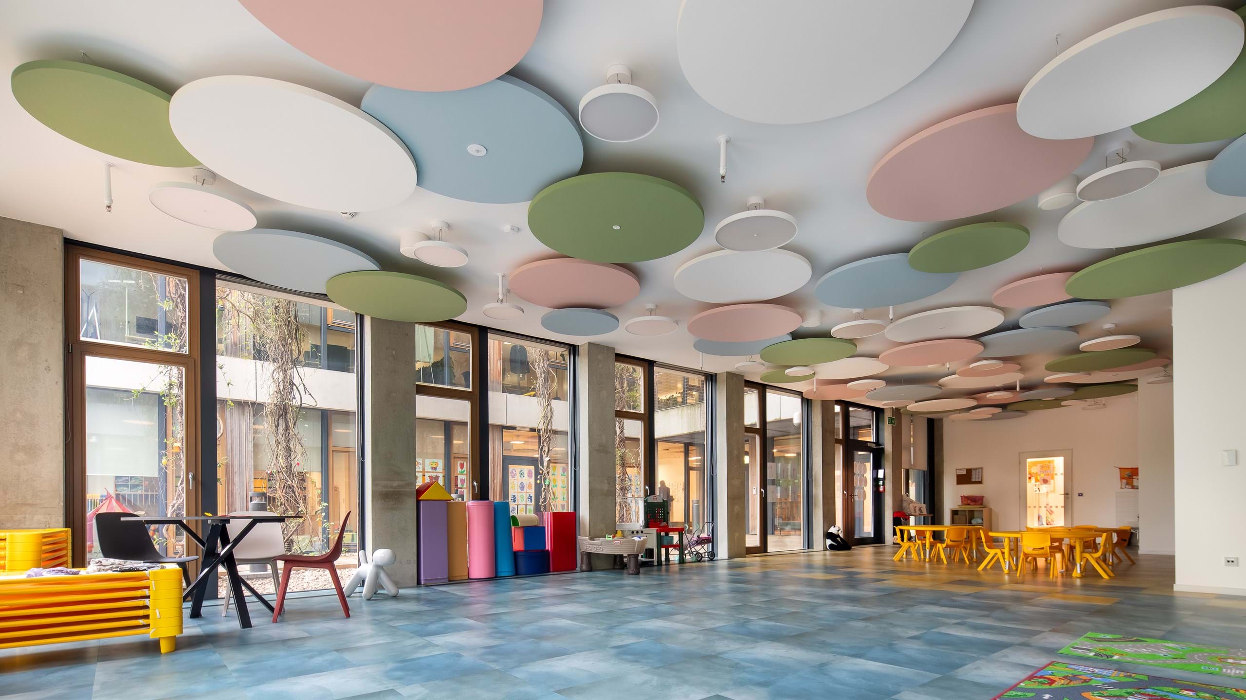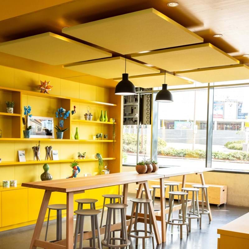 Die Farbe einer Akustikdecke beziehungsweise der Akustiklösung ist entscheidend für den Raumeindruck und das Wohlbefinden der Menschen im Raum. Studien zeigen, dass Farben einen großen Einfluss auf ein ansprechendes Umfeld sowie auf glücklichere und gesündere Menschen haben. Ecophon bietet verschiedene Farben für unterschiedliche Raumtypen an, um sowohl optische als auch akustische Anforderungen zu erfüllen.