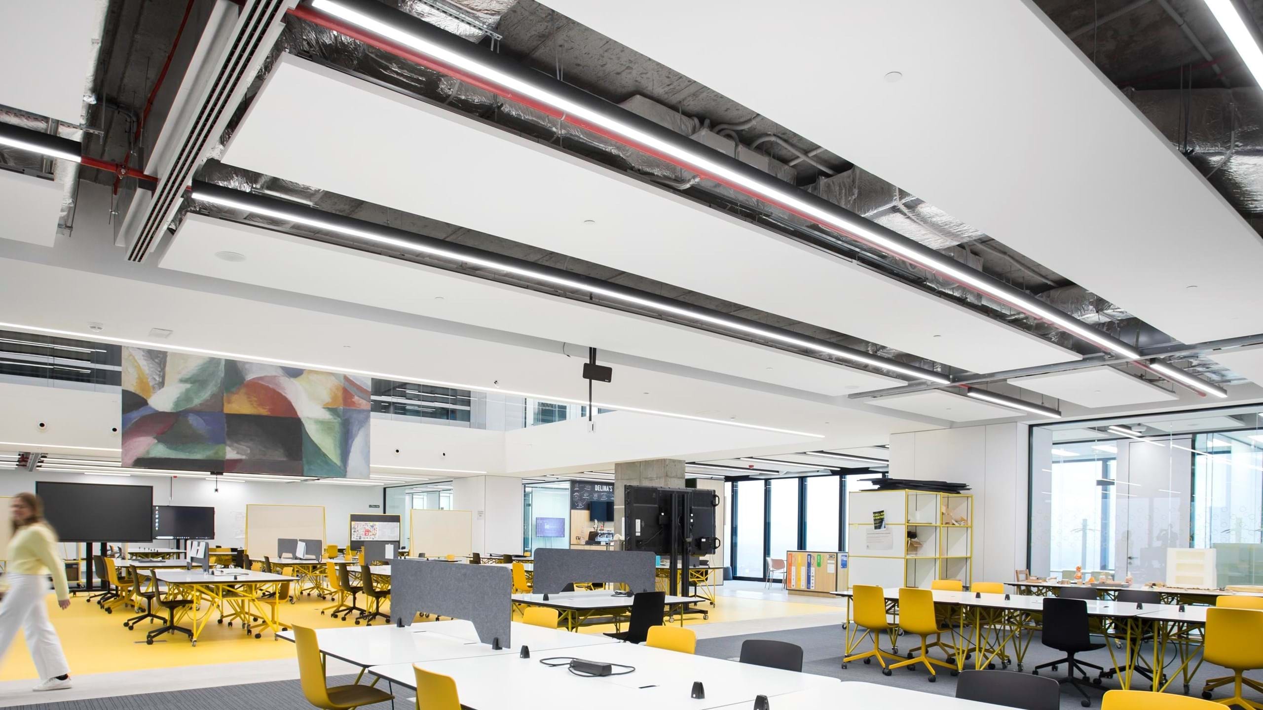 Ecophon Solo Matrix Celsius ist dank einheitlicher Formate beider Paneelarten flexibel planbar, auf jeden Anspruch anpassbar und geeignet für Neubau wie Bestand.