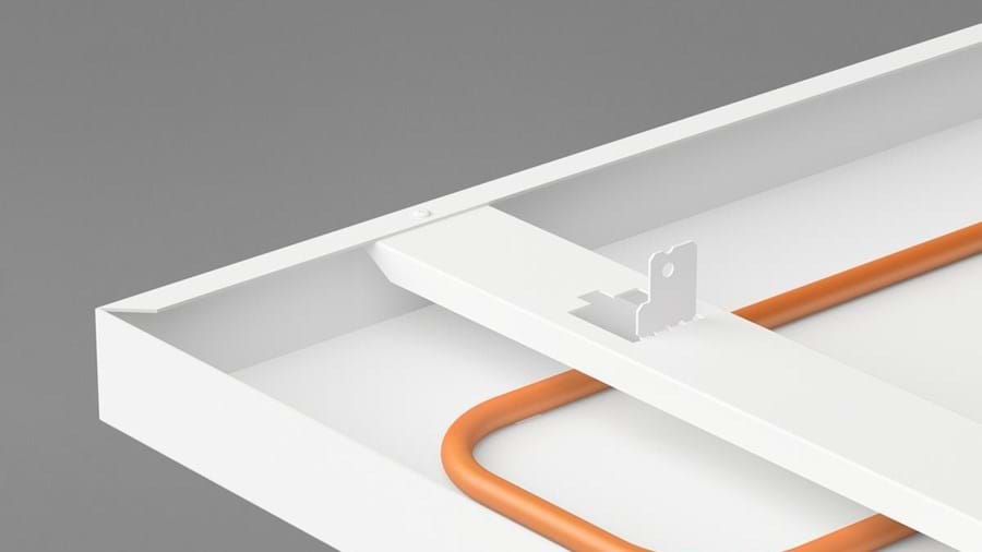 In den Strahlungspaneelen von Lindab zirkuliert Wasser in einem geschlossenen Kreislauf aus Kupferohr, das seine Temperatur an die Aluminium-Frontplatte abgibt. Die Paneele wurden für eine optimale Wärmeübertragung bei möglichst geringem Materialeinsatz entwickelt. Das Ergebnis ist herausragend.