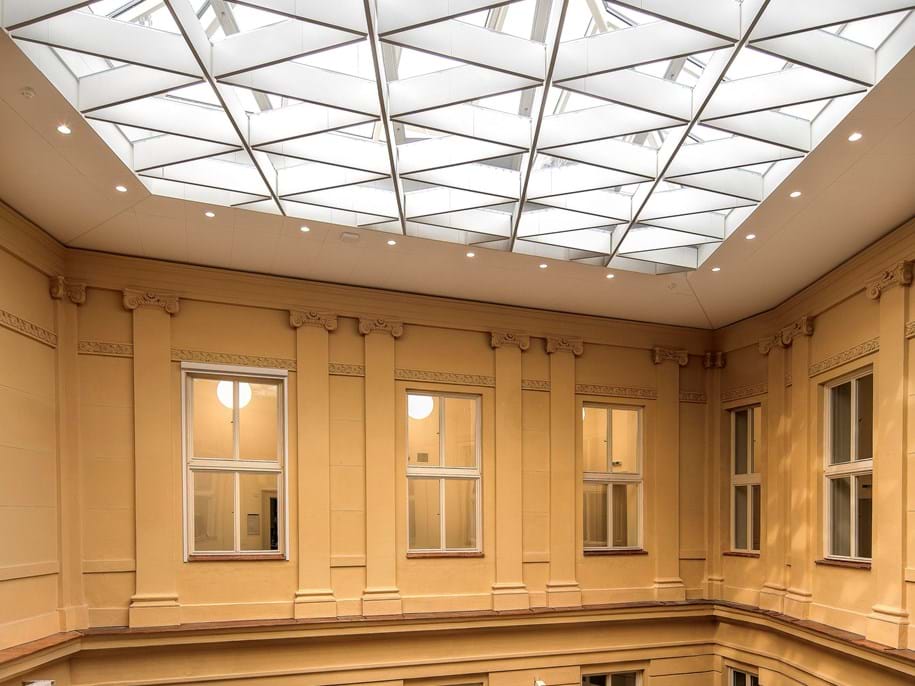 Rekonstruktion neuer Hörsäle und anderer Räume der Universität nach historischem Vorbild, ergänzt durch moderne audiovisuelle Ausstattung und funktionale Akustikelemente, um ein angenehmes akustisches Umfeld für alle derzeitigen und zukünftigen Nutzer der Schule zu schaffen.