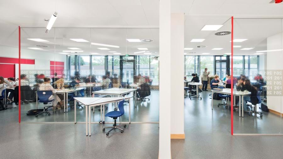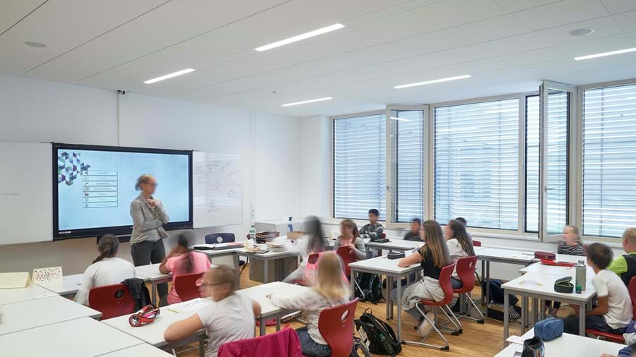 Klassenzimmer: Unterrichtsräume müssen heute viel mehr Aktivitäten abbilden können als früher. Auch sind sie mit wesentlich mehr technischem Equipment ausgerüstet, so dass die Anzahl potenzieller Lärmquellen deutlich zugenommen hat. Gleichzeitig sind die generellen Anforderungen an die Sprachverständlichkeit gestiegen – unter anderem weil deutlich mehr Fremdsprachen gelehrt werden und die sprachlichen Grundvoraussetzungen häufig sehr stark variieren.