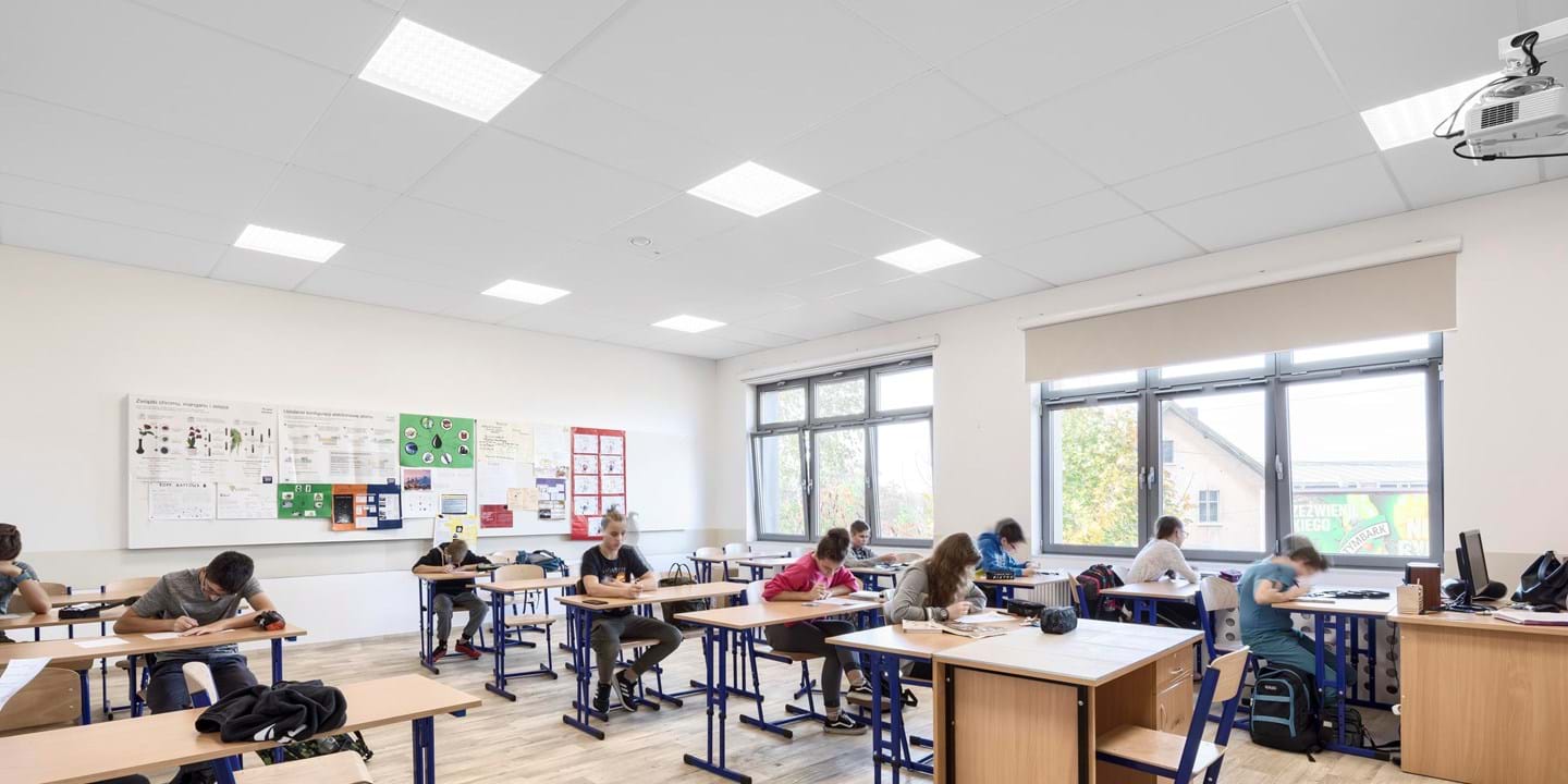 Aufgrund der hohen Lärmbelastung in Schulen sind Produkte mit einem bewerteten Absorptionsgrad von αw = 0,9 oder höher ratsam – das entspricht Absorptionsklasse A (DIN EN ISO11654). Sie sollten sich außerdem baulich, funktional und ästhetisch in die jeweilige Lernumgebung einpassen: