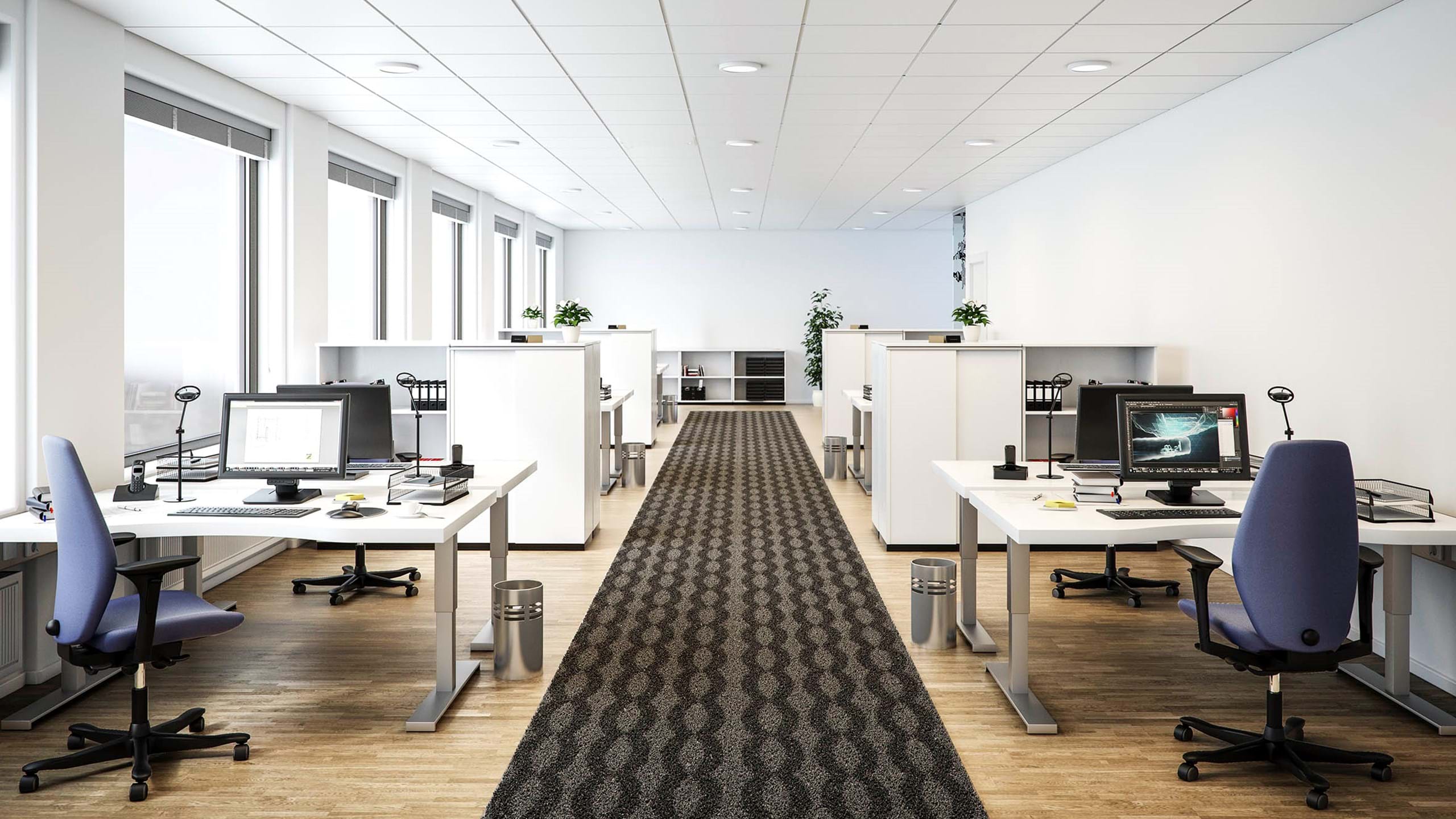 Los techos acústicos Ecophon no solo proporcionan un acondicionamiento acústico óptimo, sino que también pueden contribuir a conseguir una climatización adecuada. Los paneles acústicos Ecophon posibilitan el uso de ventilación difusa para la climatización de un espacio. Es una solución que ocupa considerablemente menos espacio que los sistemas de conductos tradicionales y que, al mismo tiempo, puede renovar más volumen de aire sin las molestias características de los sistemas tradicionales debido a las corrientes de aire y al ruido. La solución es invisible (no hay necesidad de instalar difusores en el techo), más barata y más sostenible tanto desde un punto de vista constructivo (inversión) como de rendimiento y mantenimiento diarios.