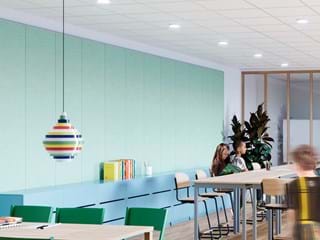 Ecophon Texona est disponibles en différents coloris. Ecophon Sombra est seulement disponible en noir, et les autres surfaces seulement en blanc.