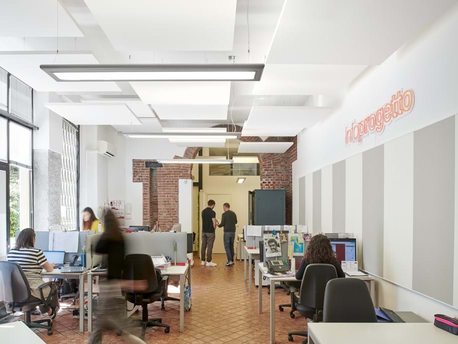 Inoltre, l'intercapedine sopra il controsoffitto ospita tubazioni e cablaggi, rendendo necessaria una soluzione acustica che riduca il rumore e limiti la diffusione del suono, mantenendo l'accesso per la manutenzione degli impianti.