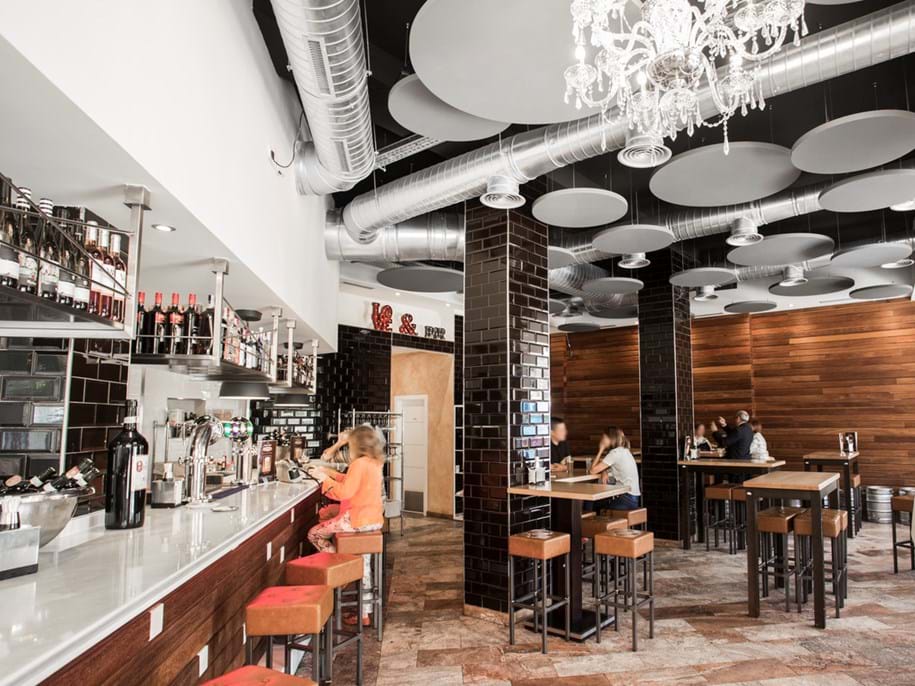 Ecophon propone un’ampia gamma di soluzioni acustiche perfette per i ristoranti, che comprendono pannelli sospesi, pannelli a parete e tessuti acustici, tutti altamente personalizzabili in forme e colori per adattarsi perfettamente all’estetica del vostro locale. Queste soluzioni non solo migliorano significativamente l'acustica, ma creano anche un'atmosfera accogliente che migliora l'esperienza complessiva dei clienti e del personale.