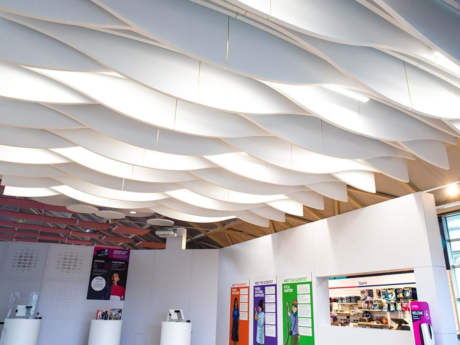 Il Winchester Science Centre è una maestosa piramide di cemento, acciaio e vetro che ospita esibizioni innovative, portando la scienza, la tecnologia, l'ingegneria e la matematica (STEM) al pubblico dal 2002. Durante i lockdown dovuti al Covid-19, il Centro ha colto l'opportunità di migliorare le condizioni acustiche identificando i "punti critici di rumore" della struttura e applicando una varietà di soluzioni fonoassorbenti di Ecophon. Il risultato è uno spazio più piacevole per tutti i visitatori, rendendolo anche più accessibile per coloro con disabilità sensoriali o sensibilità particolari.