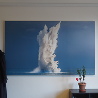 Together with the architect, we chose custom made images from defense exercises on acoustic fabric mounted on aluminum frames. The result is both a beautiful aesthetic solution and a significant improvement in the acoustic conditions.