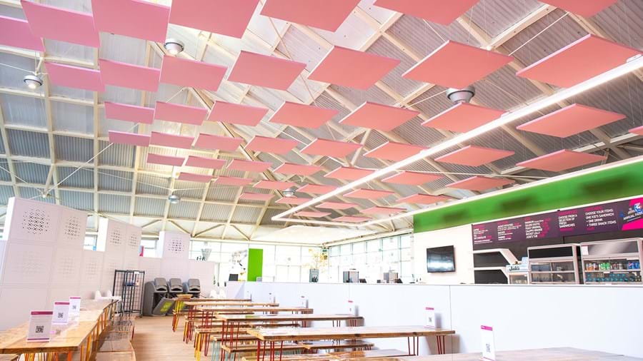 As visitors arrive in the reception area, they are greeted by Ecophon’s aesthetically-pleasing wave-themed baffles, which have made a huge difference to the room acoustic comfort in the space. Super G wall panels have been installed in the “recombobulation room”, providing a serene and calm space where children can be taken when they need a break from the hustle and bustle of the Centre. Extra Bass was also strategically added to the ceiling and perforated box dividers that separate spaces in the Centre, to great effect on disruptive, low-frequency sounds. In the cafeteria, pink Solo free-hanging units along with a Focus raft reduce obtrusive sounds common to such environments.